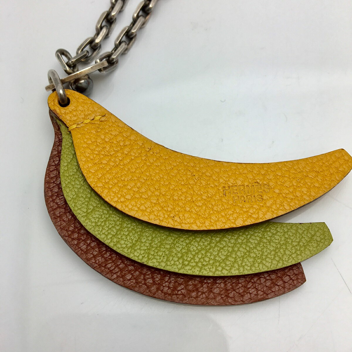 エルメス HERMES バナナモチーフ チャーム キーホルダー バックチャーム レザー イエロー×グリーン×ブラウン チェーン フルーツ 【トレジャースポット】【中古】