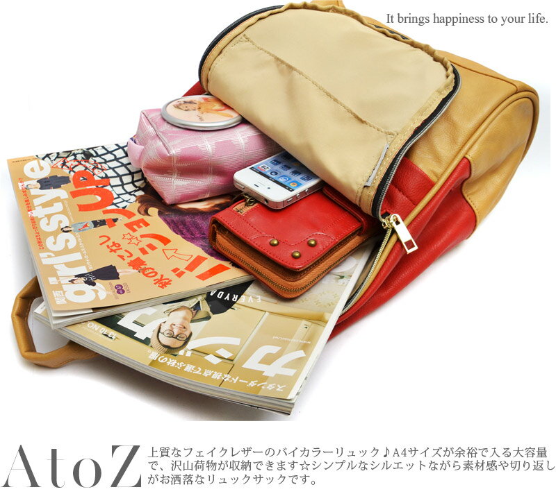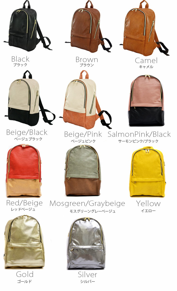 商品名 Casual Selection(カジュアルセレクション) FAKE LEATHER RUCKSACK カラー ブラック ブラウン キャメル ベージュ/ブラック ベージュ/ピンク サーモンピンク/ブラック レッド/ベージュ モスグリーン/グレーベージュ イエロー ゴールド シルバー 素材 PVC(フェイクレザー) ※この製品の素材は、摩擦・水漏れにより色落ちする場合がございます。
