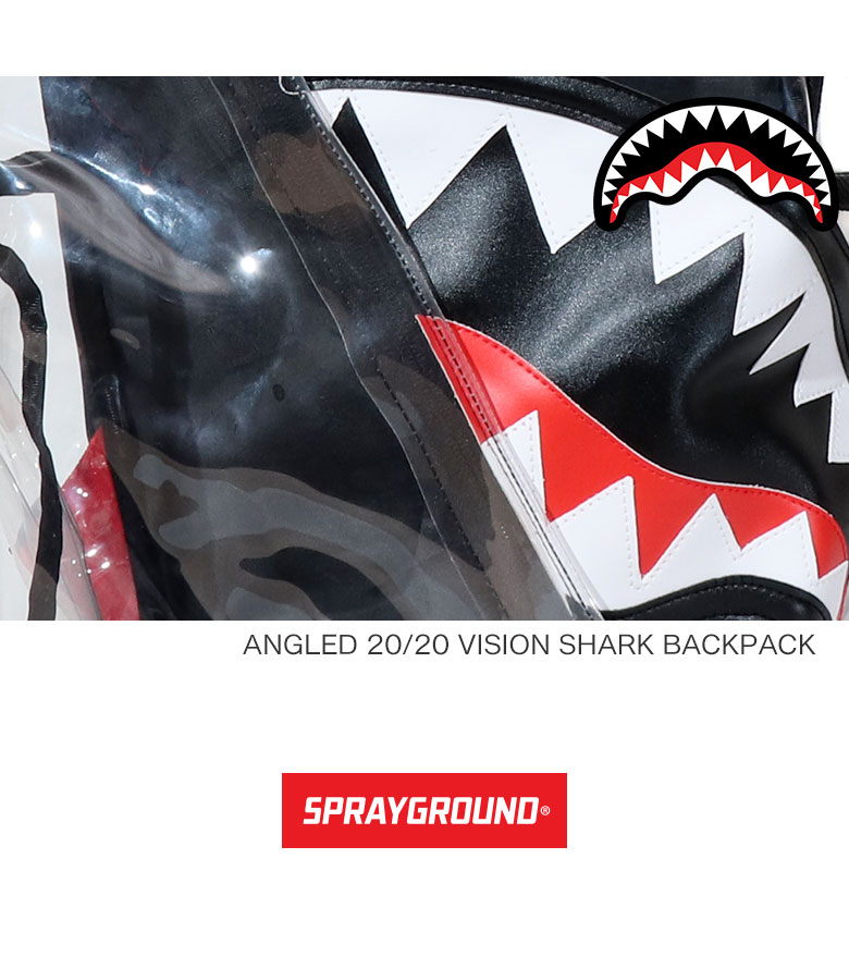 【40%OFF】SPRAY GROUND スプレイグラウンド リュック サック リュックサック メンズ レディース バックパック ANGLED 20/20 VISION SHARK BACKPACK クリア 透明 シャーク サメ 鮫 ポケット ビニール HIPHOP 派手 ストリート ブラック かっこいい 個性的 高校生 通学