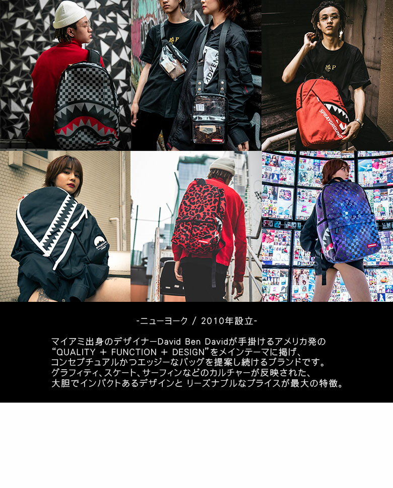 独創的なアイデアと機能的なデザインでストリートを魅了するバックパックを展開するブランドのSPRAYGROUND。